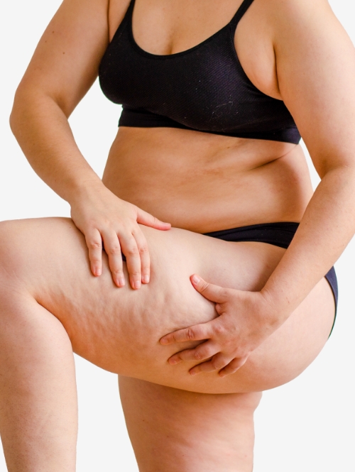 Stadium II – Fortgeschrittener Zustand: Die Fettdepots werden deutlicher und die Haut zeigt erste wellenförmige Unebenheiten. Häufig treten Schwellungen auf, insbesondere am Abend oder nach körperlicher Belastung. Das Gewebe fühlt sich zunehmend hart und gespannt an.